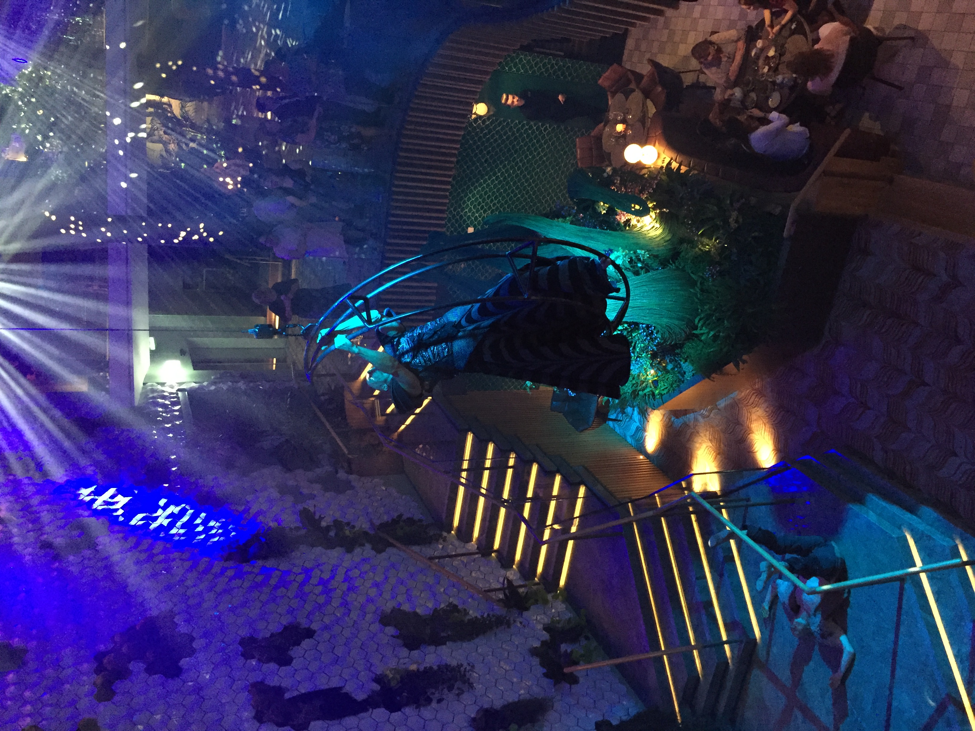 Last thing to review on the entertainment side is a new concept they are testing called “Eden”.  This one is a bit difficult to describe.  Now, I’m well aware that not everyone enjoys the same thing.  This particular venue is not for everyone, and I seem to fit that category.  The space is incredibly designed.  I LOVED going in there and was so excited b/c it had so much potential.  The entertainers are costumed spectacularly, and they have very cool looking (and very expensive) specialty drinks.  The entertainment itself has to be experienced to be understood.  It is very interpretive and free-form.  They don’t necessarily follow a story line.  At one point an entertainer made a big show of not being able to get comfortable on a hard stage.  At another time the cast was sitting around playing oboes and lyres.  I just didn’t get it, and really couldn’t find anyone else who could explain it.  Most frequent comment was “It was weird”.