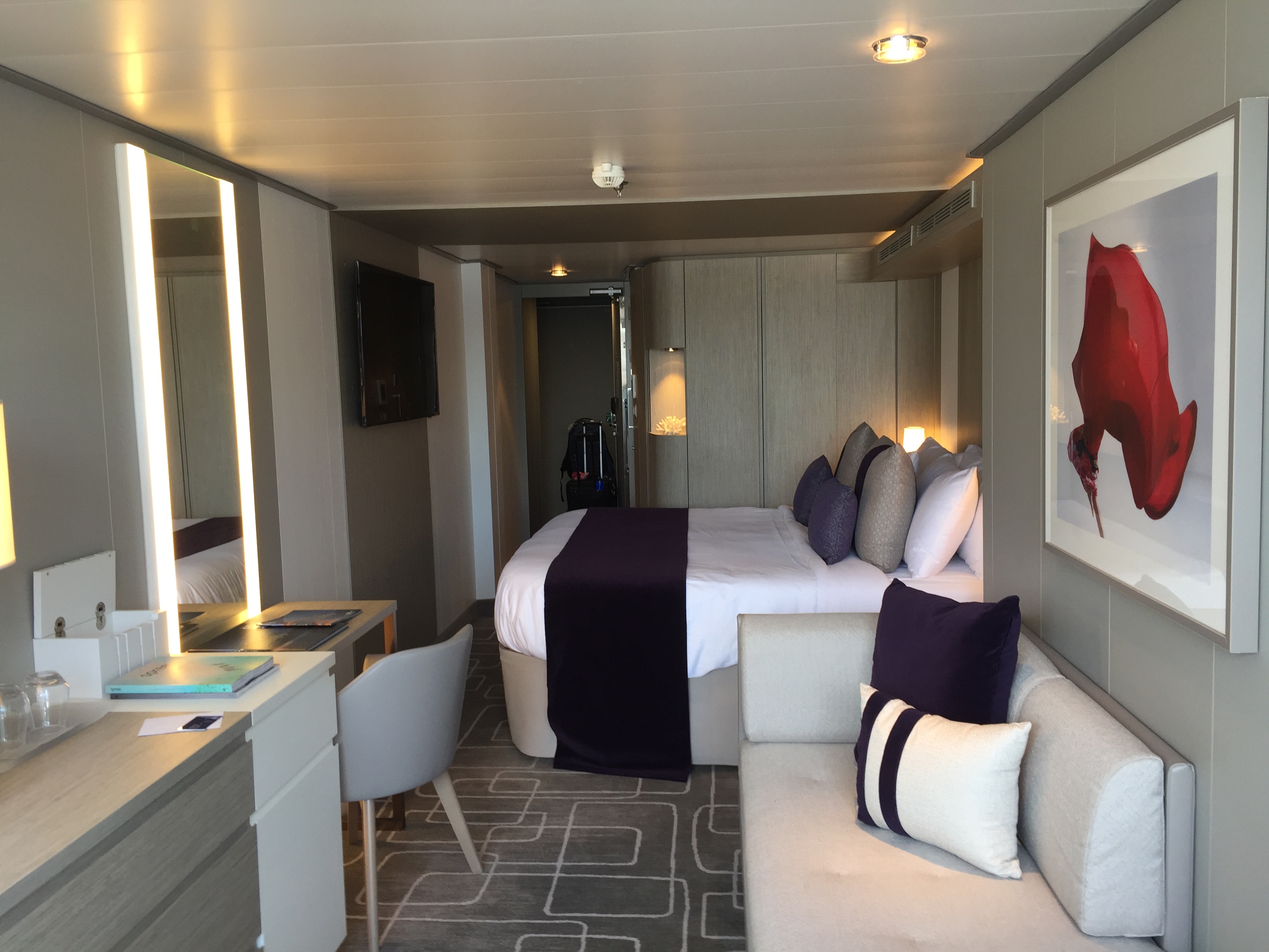 The rooms were beautiful and like many of the other areas, they are trying out some new concepts. Most notably is the Infinite Veranda suites. These have taken the place of the balconies. Basically, there is an area for the balcony with floor to ceiling windows. The top window comes all the way down and the whole room opens up to the fresh air. It makes the room seem much larger. That was pretty cool, but there are serious issues with the design.