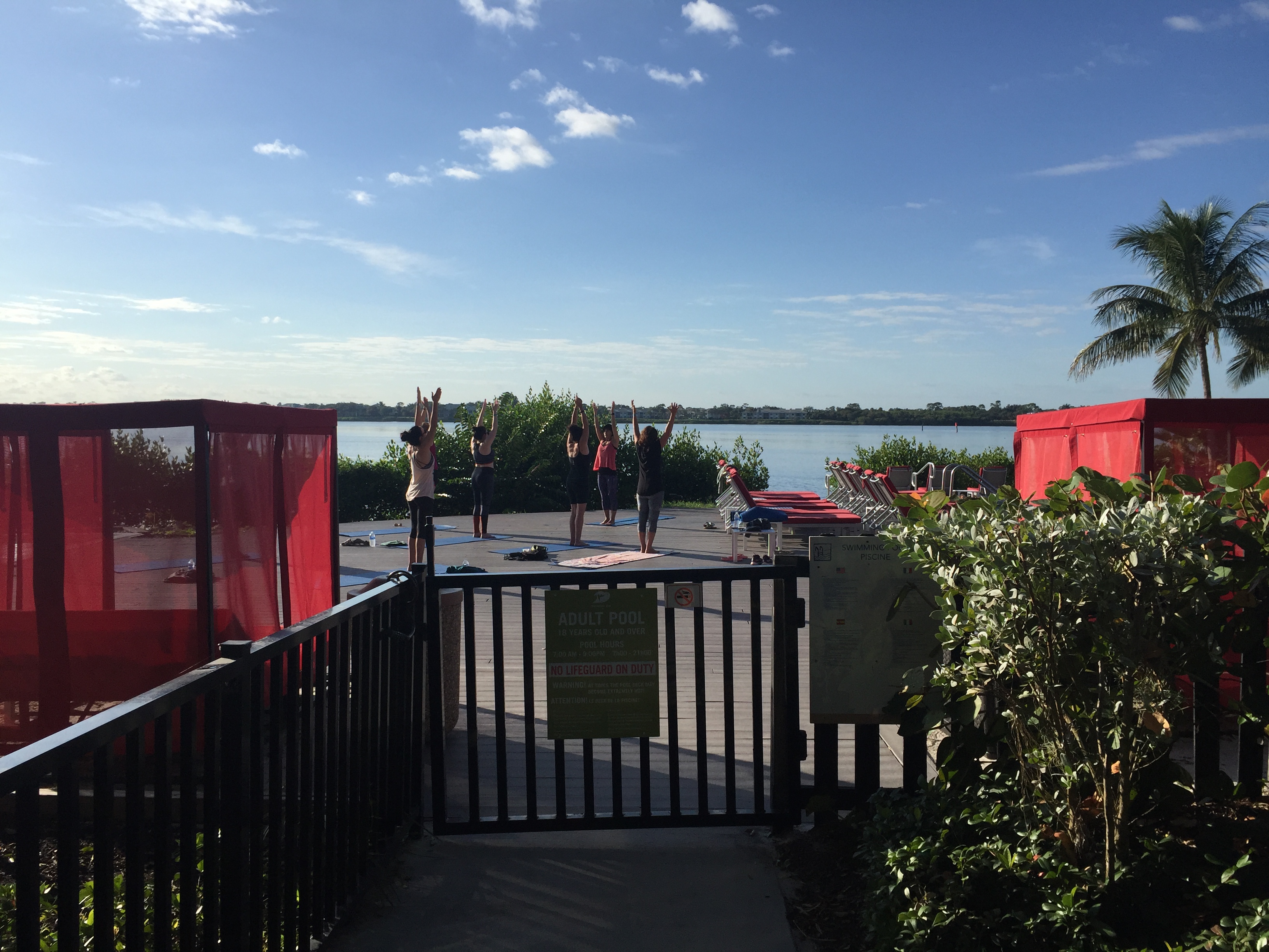 Moving to the non/less mainstream sport activities. Ever wanted to run away and join the circus? Well here is your chance to get a taste of what it would be like on the trapeze. Just make sure you don’t let your friends talk you into doing it “with them” only to have them bail and “observe” from the bleachers. Kind of feels like I lost a bet on that one, but totally worth it. Want to work on your short game, there is a miniature golf course. Paddle board? They got’em. Sailing? Yep. All of that is included. For an extra charge you can strap on a water jet pack and go blast off over the water. The lovely Mrs. Frazier enjoyed a morning yoga class by the water. Speaking of water, there are multiple pools and a small water park for the young kids. There is a small, adults only pool with hot tub and bar. Can’t remember what we were drinking, but it was delicious and had orange juice in it, so I’m sure it was mostly healthy.
