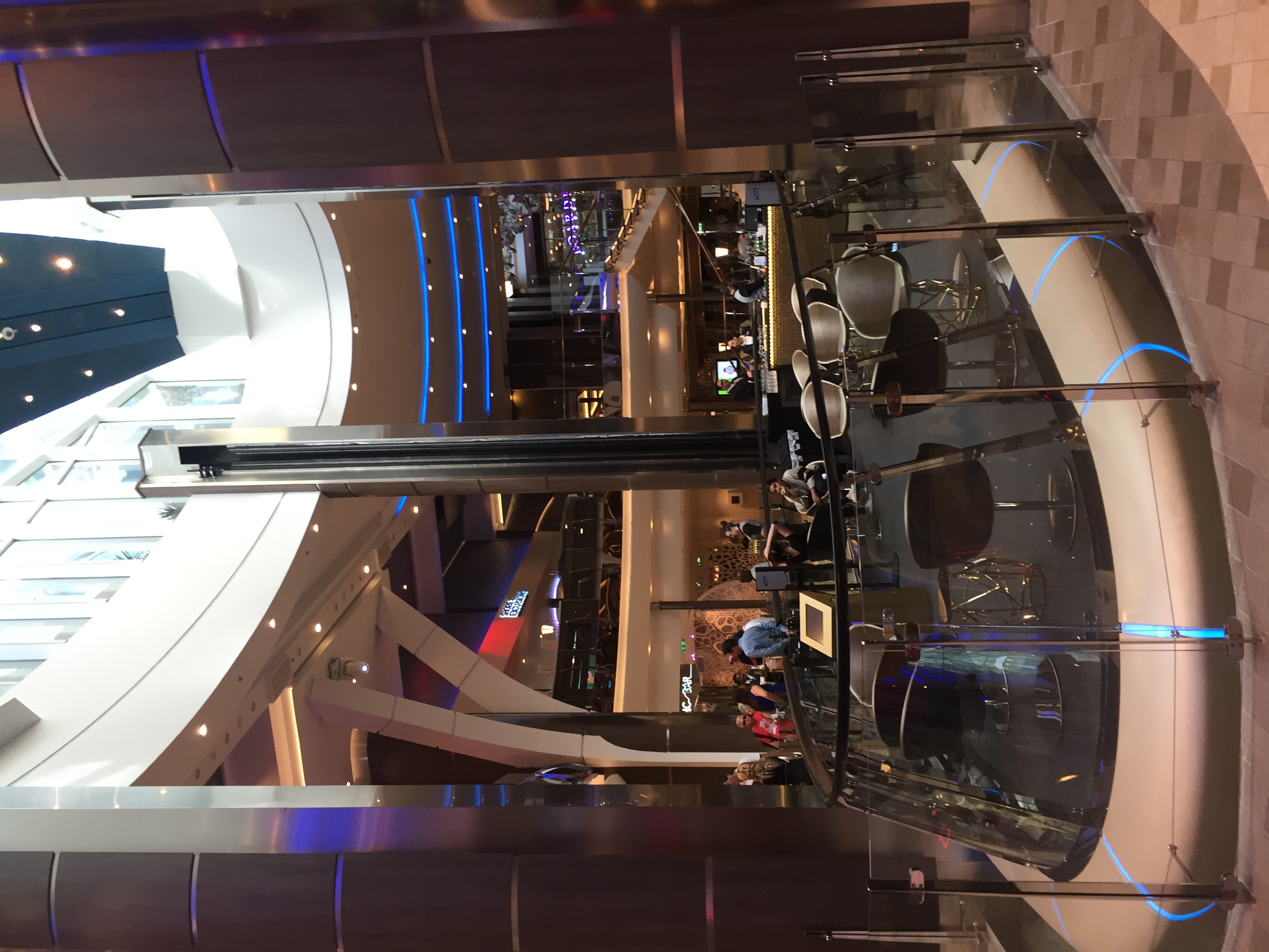 The immensity of the ship becomes more apparent and you get an even better feel for the enormity of the ship as you walk through the gangway. Even the lifeboats are huge. She is currently the largest cruise ship in the world! When you walk in you are greeted warmly and are impressed with the newness and the polish of the ship. There are cool pieces of art, restaurants’ and of course the bionic bar. Yes, finally you can go high tech with your drink order! Do you still have to tip the bartender? Not sure if you do or not, but if you don’t, at least they won’t give you a dirty look, just a bionic finger (just kidding).