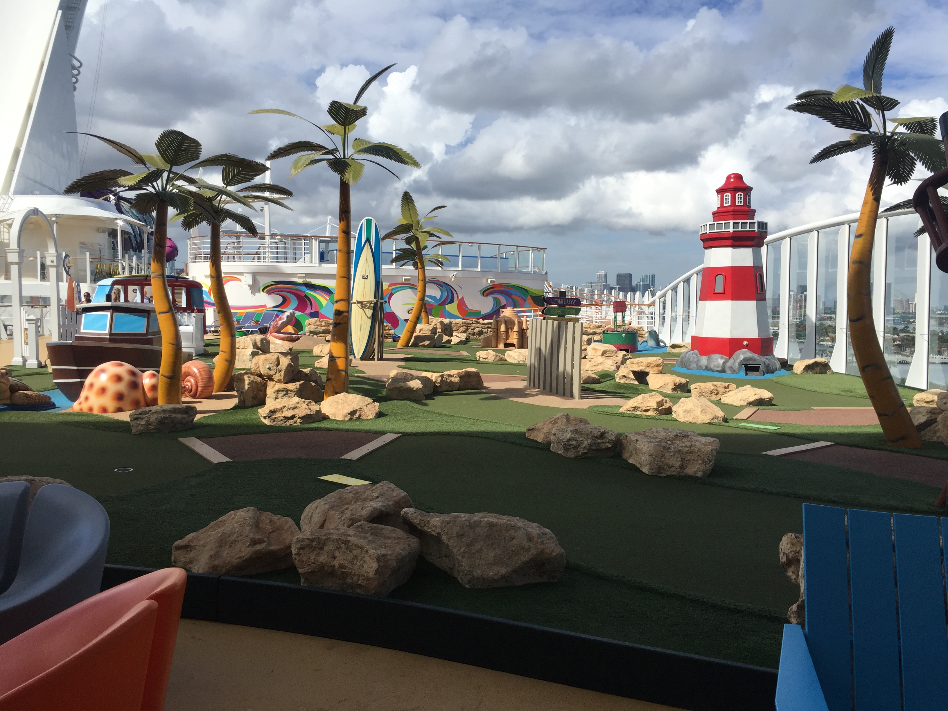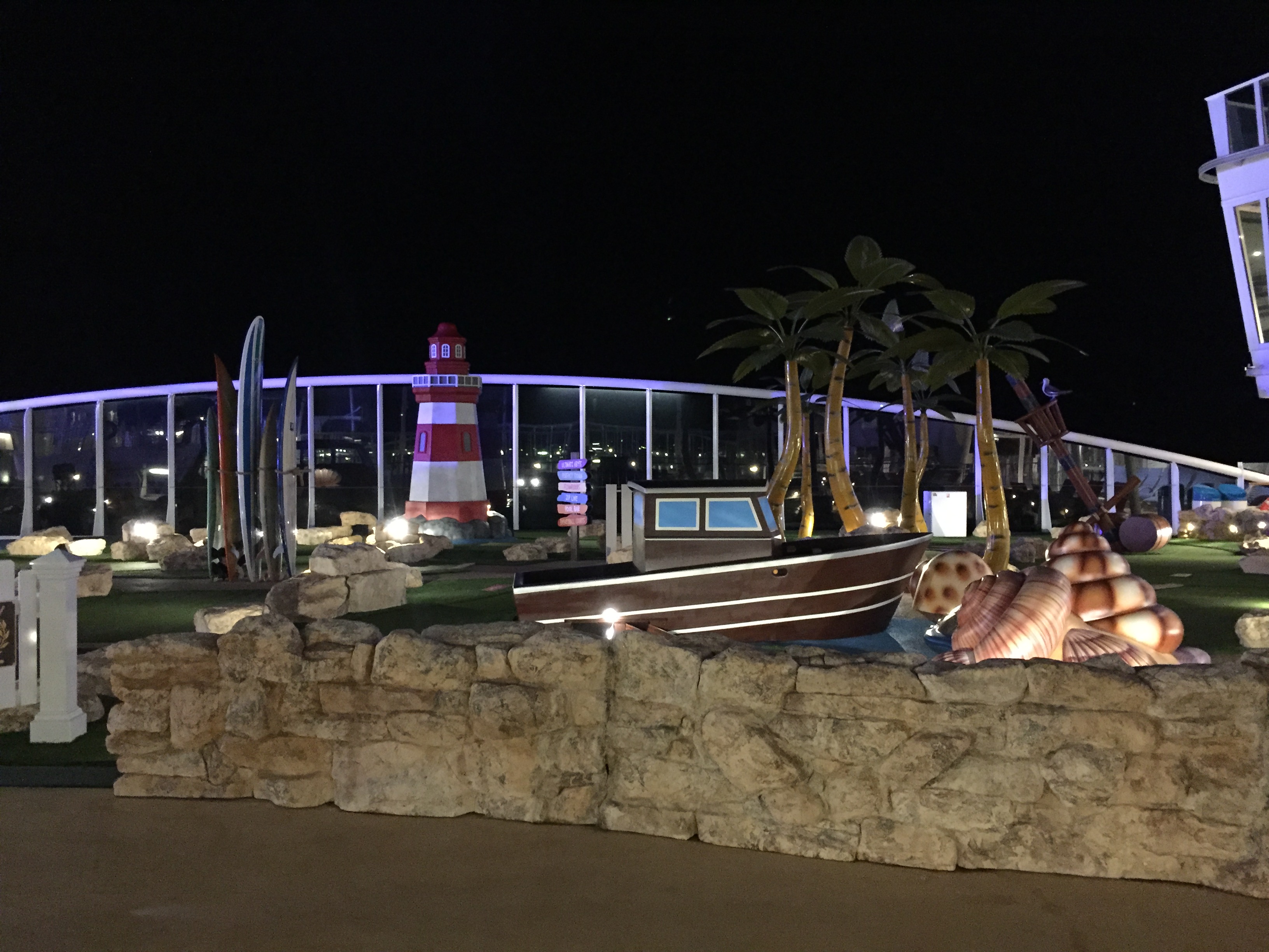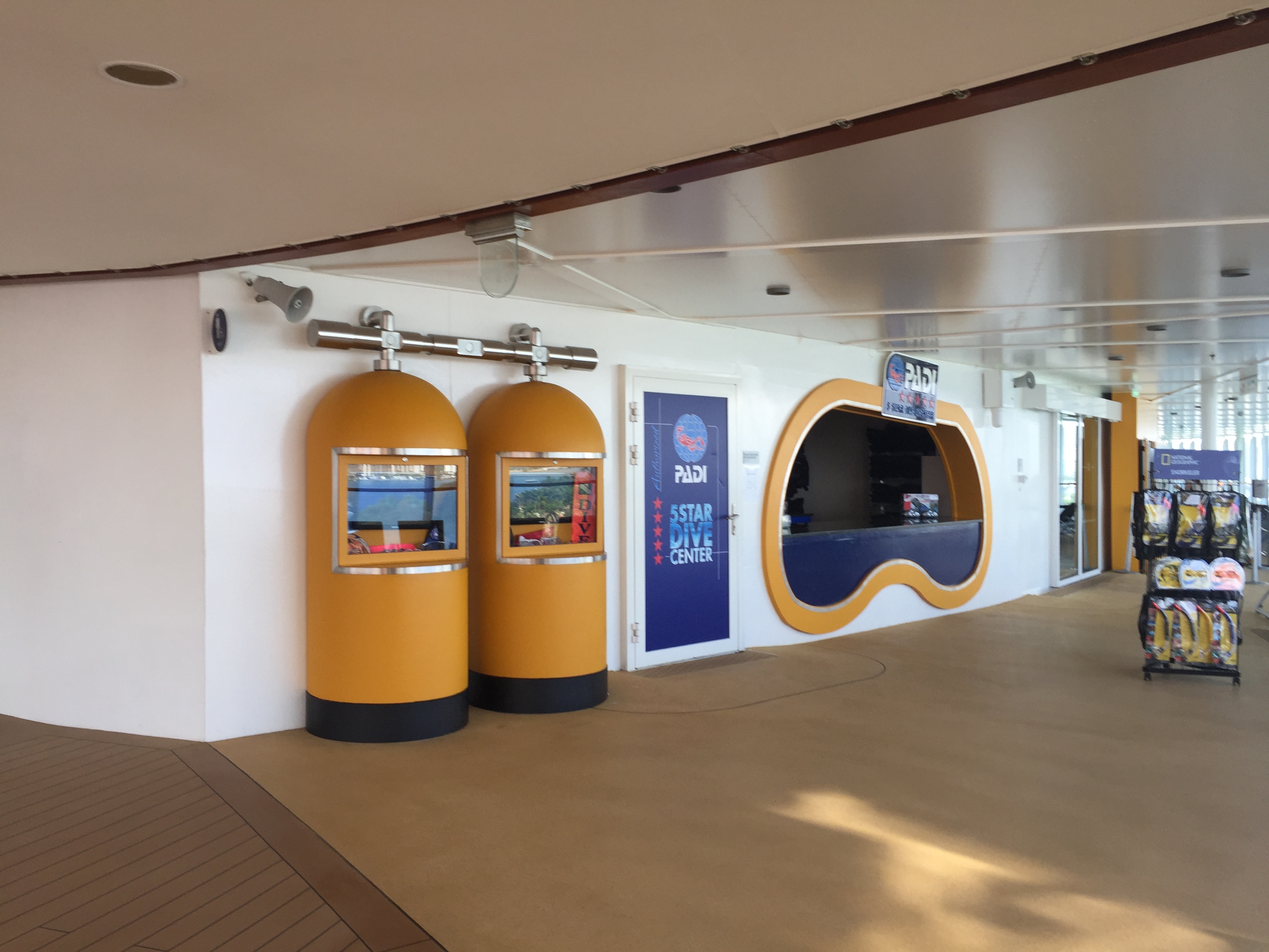 Close by the zip line is the miniature golf course. Pretty nice one by cruise ship standards. It is also lit up for those of you who want to do a little “…night putting. Putting at night with the deans daughter” ($25 gift certificate to Expedia CruiseShipCenters Polaris for the first person who correctly recognizes the movie this edited quote came from and puts it in the comments). Just down from the miniature golf course is an on-board Padi dive shop. You can take introductory courses in the pool on-board and arrange dive shore excursions here or near the shore excursion stations near the bionic bar on deck 5.