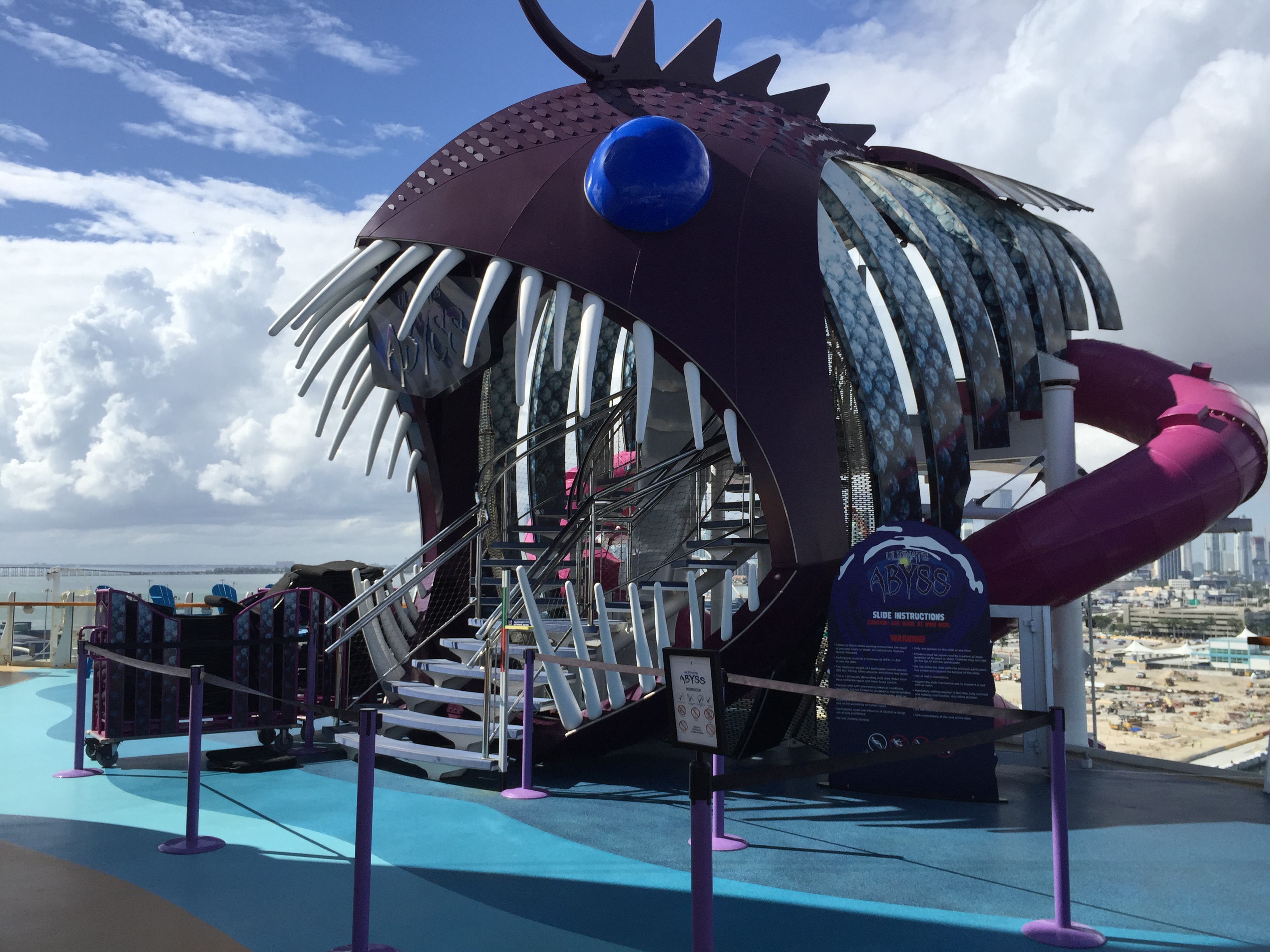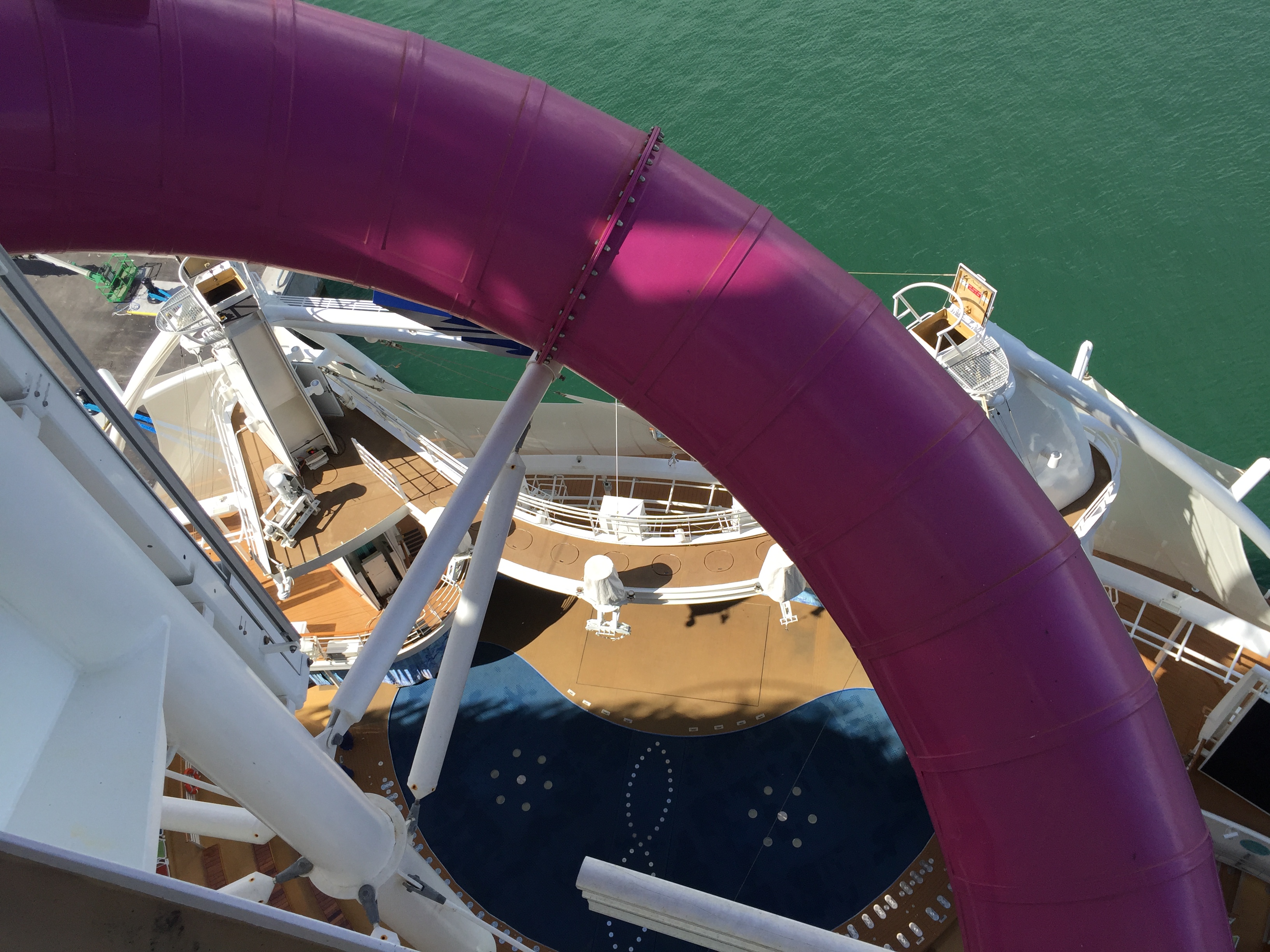 Speaking of slides, the Ultimate Abyss was another thing about this ship I could not wait to do. This is a 10 story dry slide. I definitely recommend it. So fun. When you go down there are sound effects and lights. With more time I could have done this over and over. A question I got from my daughter was about static electricity. Don’t worry, they give you a special mat to sit on so you don’t get shocked.