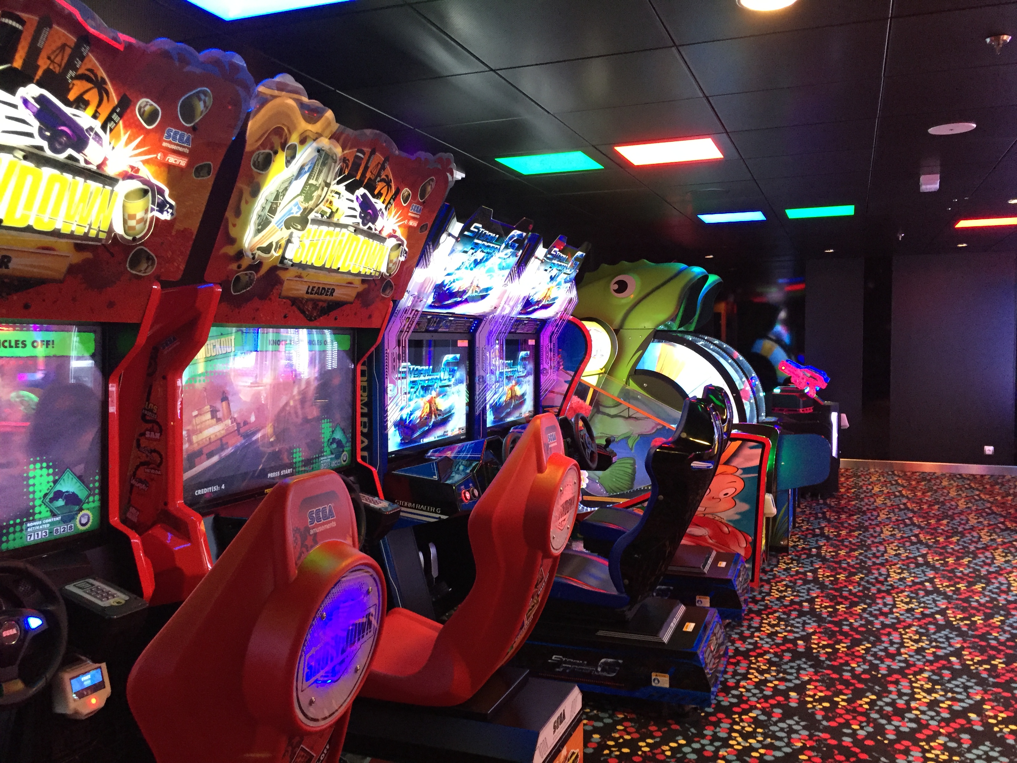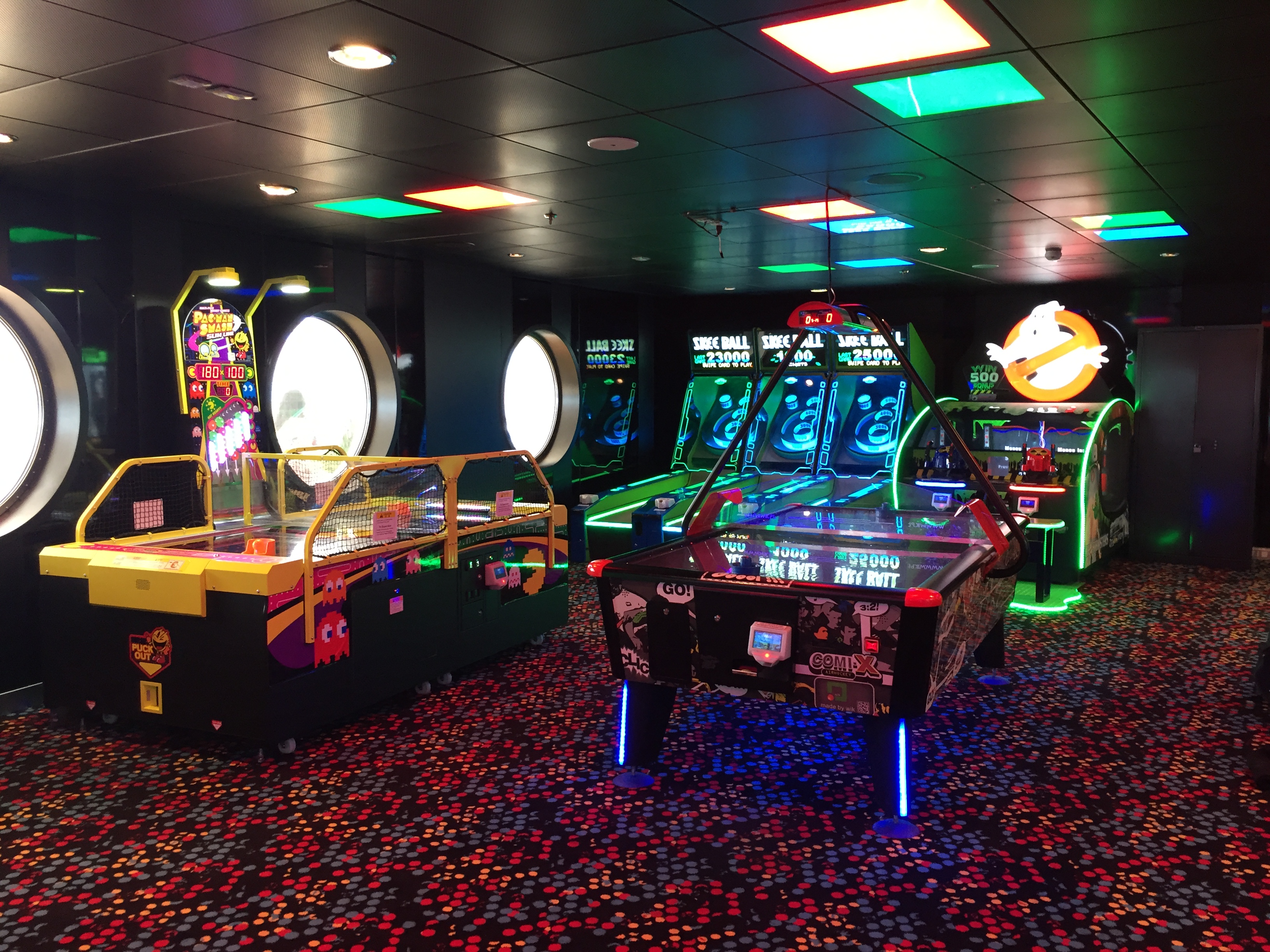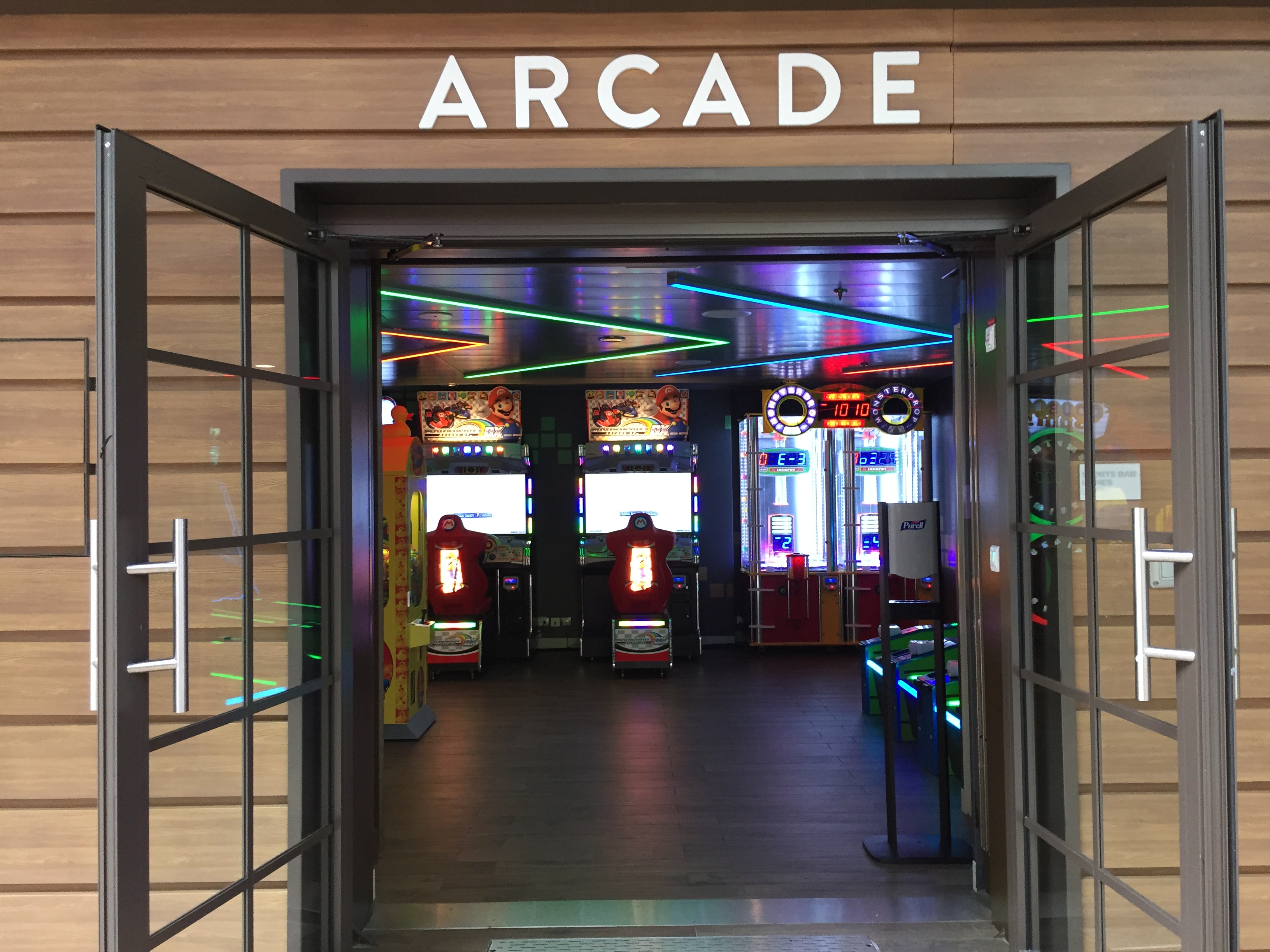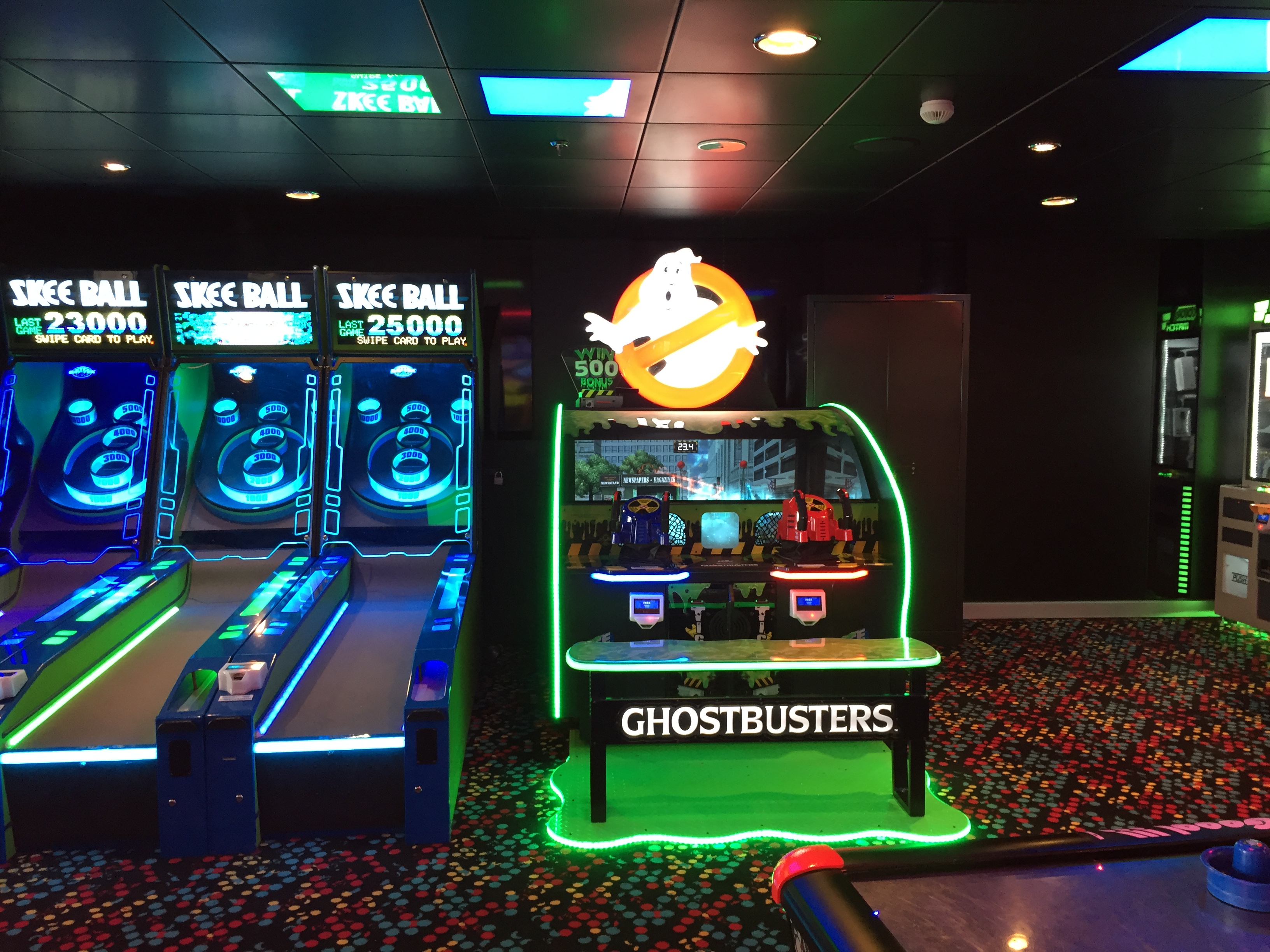 But John, I don’t want to work up a sweat and want to get my game on arcade style. Don’t you worry. There are multiple arcades on-board. There is one on an upper deck that I really wanted to play the Ghostbusters game, but did not fit it in. The other arcade is attached to the sports bar on the boardwalk. Outside of it are basketball and football shooting/throwing games you see in some bars. I’m not sure these are free though. While we were on board they were but I saw little card readers for sea passes so check before you go crazy.